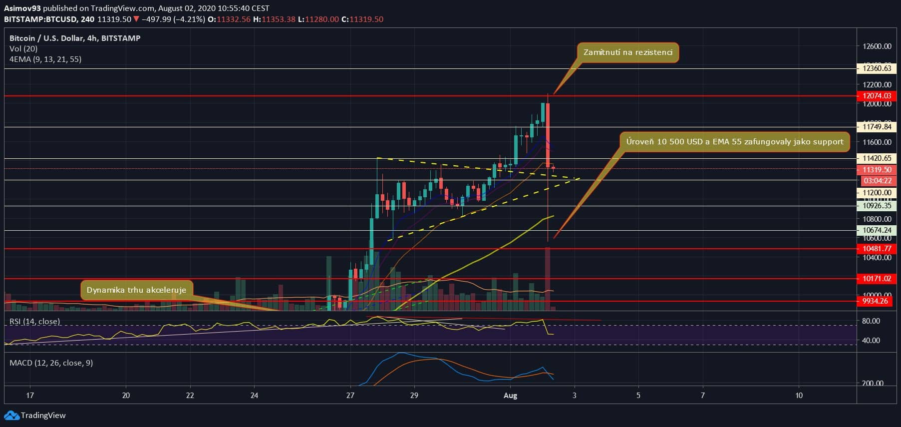 Jak jsem v páteční analýze na Bitcoin (BTC) avizoval, tak opravdu kurz pokračoval v expanzi. Avšak nečekal jsem, že ta expanze bude dlouhá, protože jsem považoval úroveň 12 000 USD za hodně silnou rezistenci.