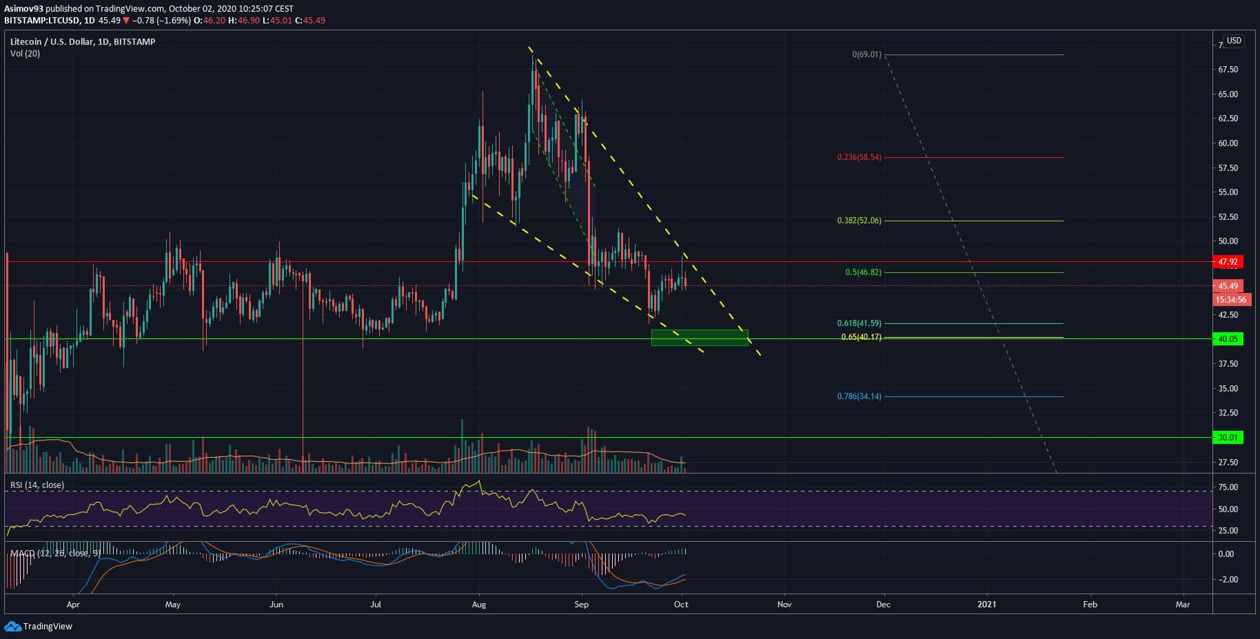 Cenová oblast okolo 40 USD je silný support a nemělo by bát snadné jím projít. Leč kdyby tahle úroveň nevydržela, tak další je až kolem 30 USD. Abych byl upřímný, tak Litecoin už nyní nemá moc kam padat a je zde i reálné, že atakujeme roční low. Mně osobně to ale nevadí, protože se to doteď pokaždé podařilo vyhnat alespoň částečně zpátky.