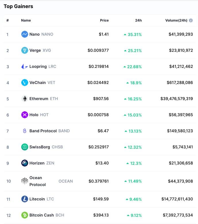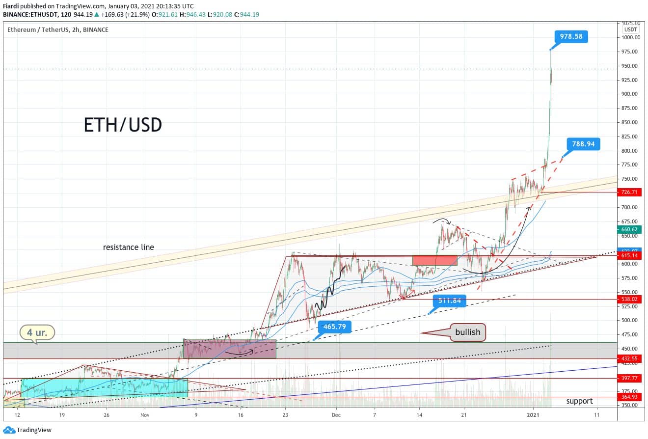 Bulls poté umožnili ceně ETH růst na hranici 750 USD, kde uzavřel rok. Za posledních 24 hodin sledoval ETH trend svého protějška – královské kryptoměny BTC a v novém roce obecně roste. Jeho podpora zůstává na 725 USD, zatímco nejvyšší cena, kterou dosáhl za poslední rok, byla 978 USD. V současné době se pohybujeme na ceně 920 USD. To je téměř 23% nárůst během jednoho dne a +31 % za týden.