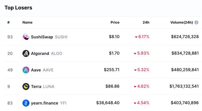 Celkový objem kryptoměnového trhu za posledních 24 hodin je 229 miliardy USD, což představuje růst o 55 %. Celkový objem v DeFi je v současné době 27,1 miliardy USD, což je 26 % celkového 24hodinového objemu kryptotrhu.