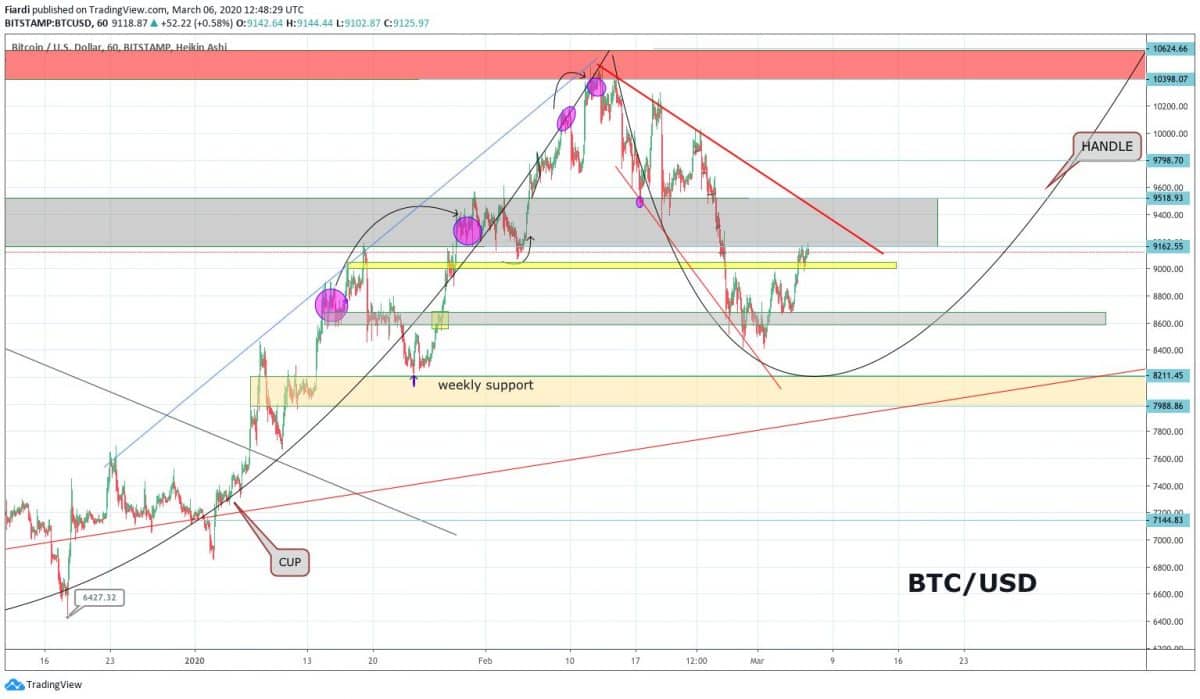 Vítejte tradeři a traderky u naší další aktualizace analýzy na BTC. V poslední analýze jsme predikovali růst z 8 800 USD na 9 100 USD. Predikce nám krásně vyšla, ale vypadá to, že býci ještě nemusí končit a pokusí se dostat na 9 500 USD (podle TA).