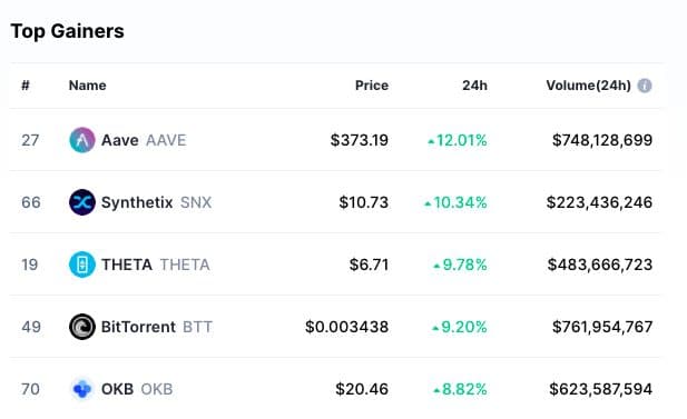 Celosvětová kryptoměnová kapitalizace je 1,68 bilionu $, což je nárůst o 3,59 % za poslední den. Celkový objem kryptotrhu za posledních 24 hodin činí 97,64 miliardy USD, což představuje nárůst o 24,74 %. Celkový objem v DeFi je v současné době 13,31 miliardy USD, což je 13,63 % celkového 24hodinového objemu kryptotrhu. Objem všech stabilních coinů nyní činí 76,59 miliardy USD.