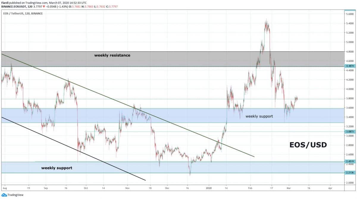 Vítejte tradeři a traderky u naší další aktualizace analýzy na EOS/USD.