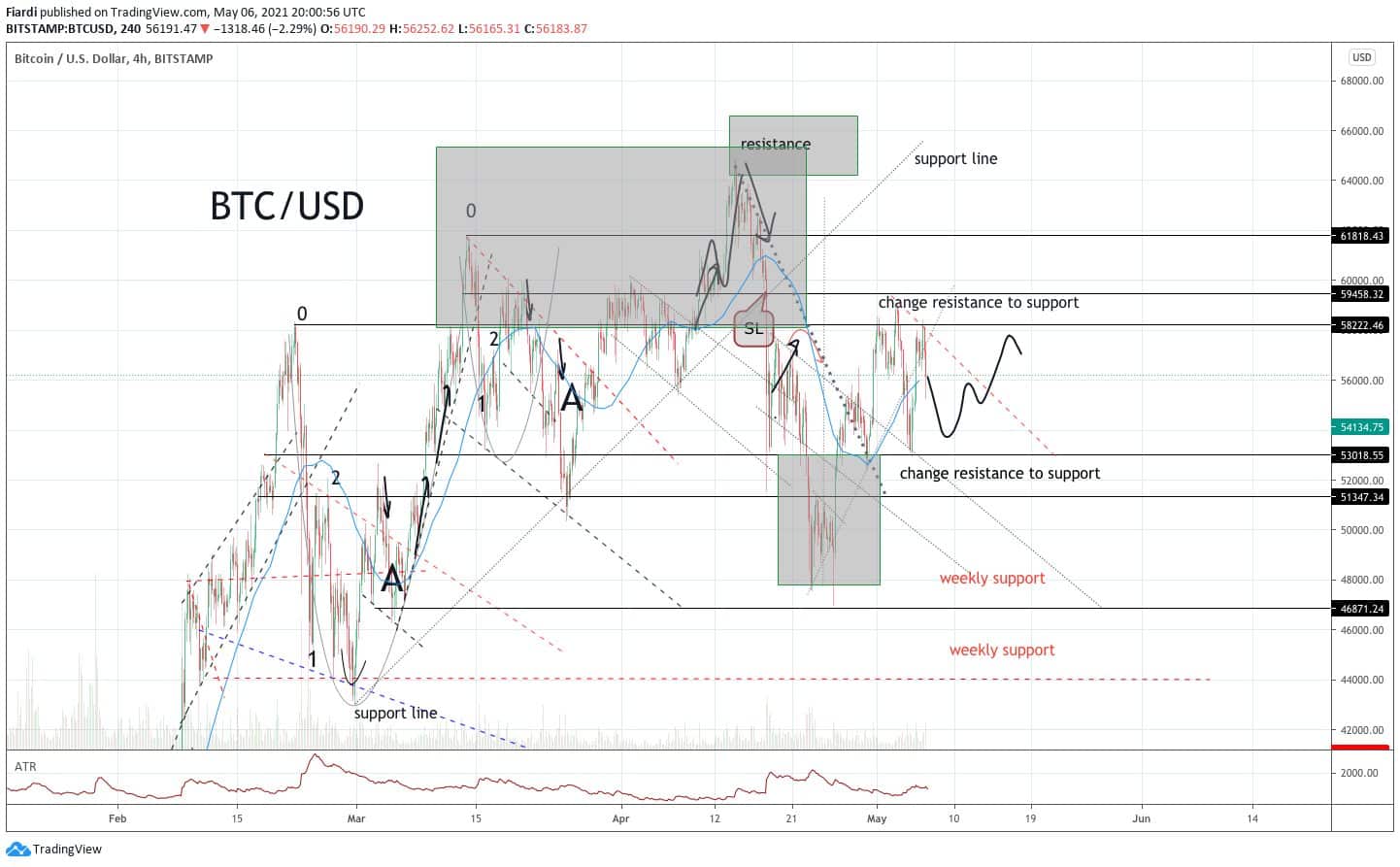 Momentálně vidíme Bitcoin konsolidovat v kanálu do strany s jasně daným odporem na 58 000 USD a podporou začínající na 53 000 USD. Pokud si odmyslíme předešlé 63 000 ATH, tak se pohybujeme v kanálu do strany už dlouhé měsíce a vypadnout z tohoto kanálu před létem bude velmi těžké. Bitcoinu chybí tweety i větší investoři, kteří by to potáhli na nové ATH. Investoři se zaměřují na jiné altcoiny, hlavně z oblasti DeFi, které momentálně rostou.