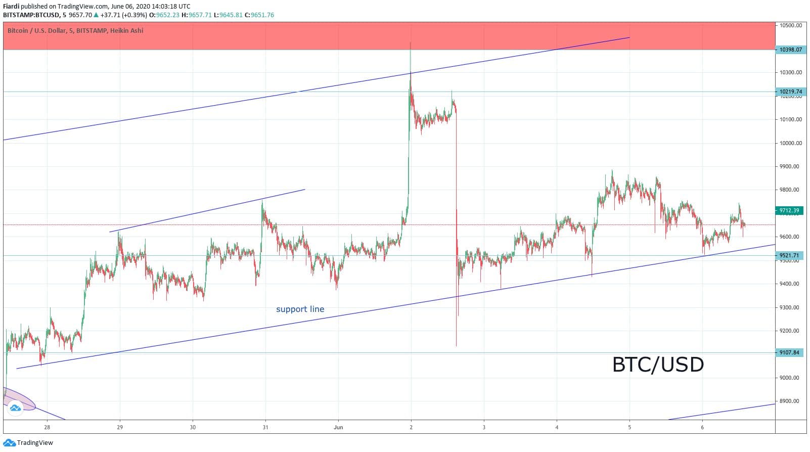 Bitcoin se v sobotu držel na 9 700 USD a nevidíme v denním rozptylu žádný velký pohyb. Low včerejšího dne zaznamenáváme na 9 252 USD a high zase na hodnotě 9 744 USD. Poslední víkendy jsou vždy o tom samém: V pátek začne mírný propad, v sobotu se většinou nic neděje a v neděli začíná trh ožívat. Není divu, léto je tady a mnozí ten čas využívají raději k výletům a místo sezení u PC jsou raději v přírodě. Netýká se to jen investorů na Slovensku či Česku, ale určitě i větších ryb, které udávají trhu směr a tempo.