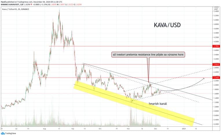 Momentálně se nacházíme na hodnotě 1,6 USD a jak vidíme jsme ve velkém patternu v bearish kanálu. Uvnitř ale vidíme malý bullish kanál. Stále platí pravidlo trendových patternů o tom, že bearish kanál skončí až prolomením resistance line. Jakmile ji přelomíme přijde obrovský růst a to může klidně nastat teď když oznámili nový event Harvest V2 (30.12.20). Jistota ale bude ten resistance line. Držte se toho.