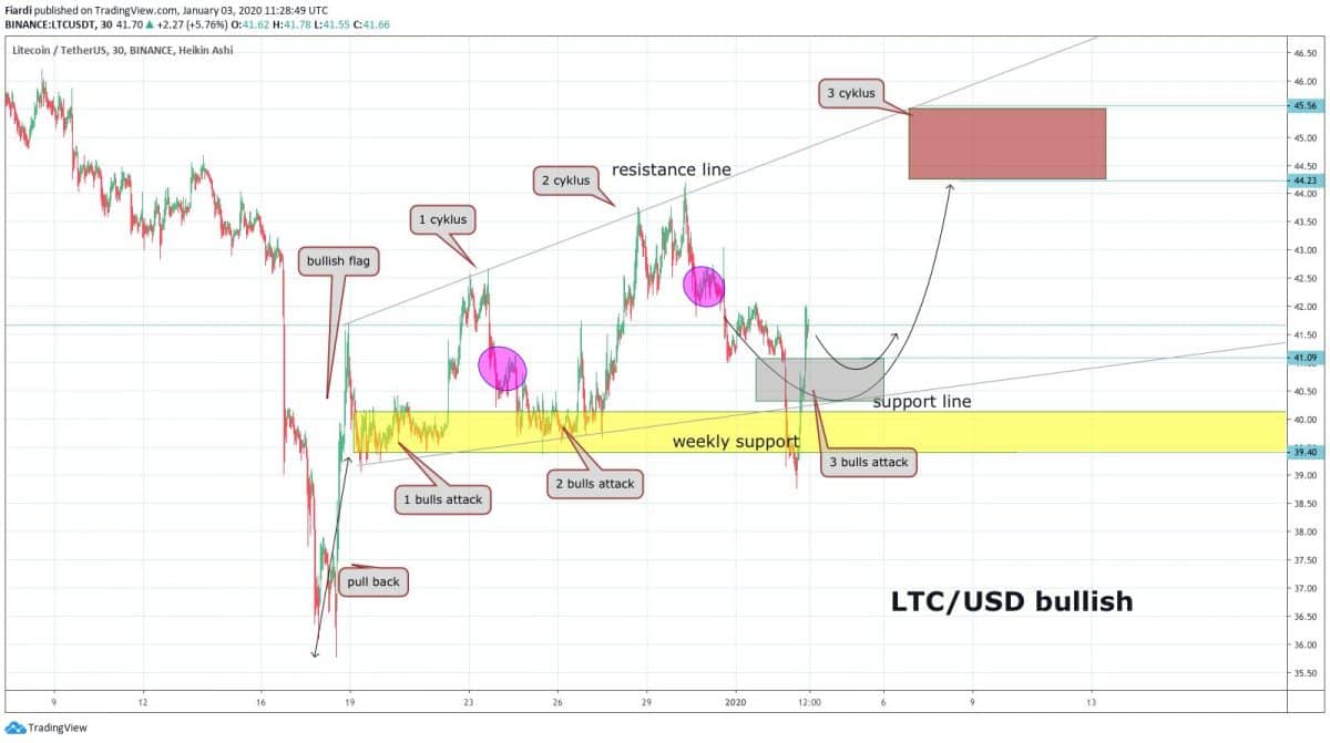 Na grafu níže vidíte naši poslední predikci na LTC.