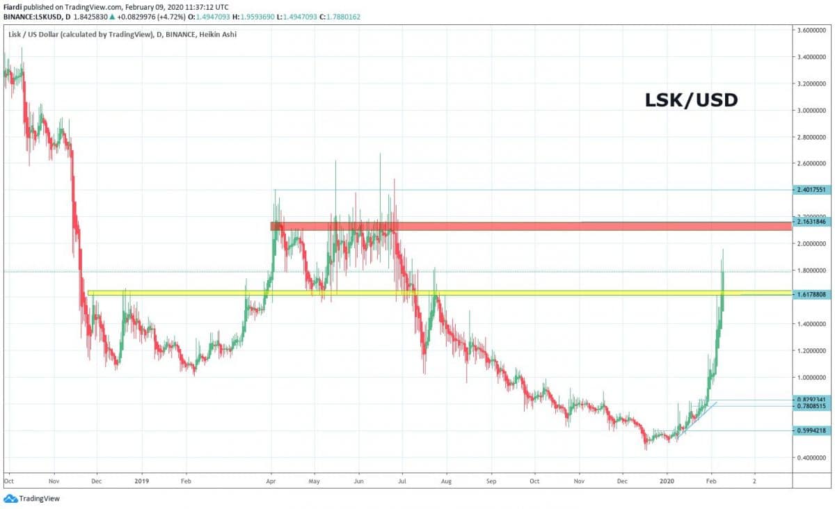 Lisk jakož i Litecoin prožívají nejúspěšnější vstup do roku 2020 po tom, co i sám král kryptoměn přidal již přes 40% nárůst na hodnotě. Lisk a Litecoin dnes na novém high za rok 2020.