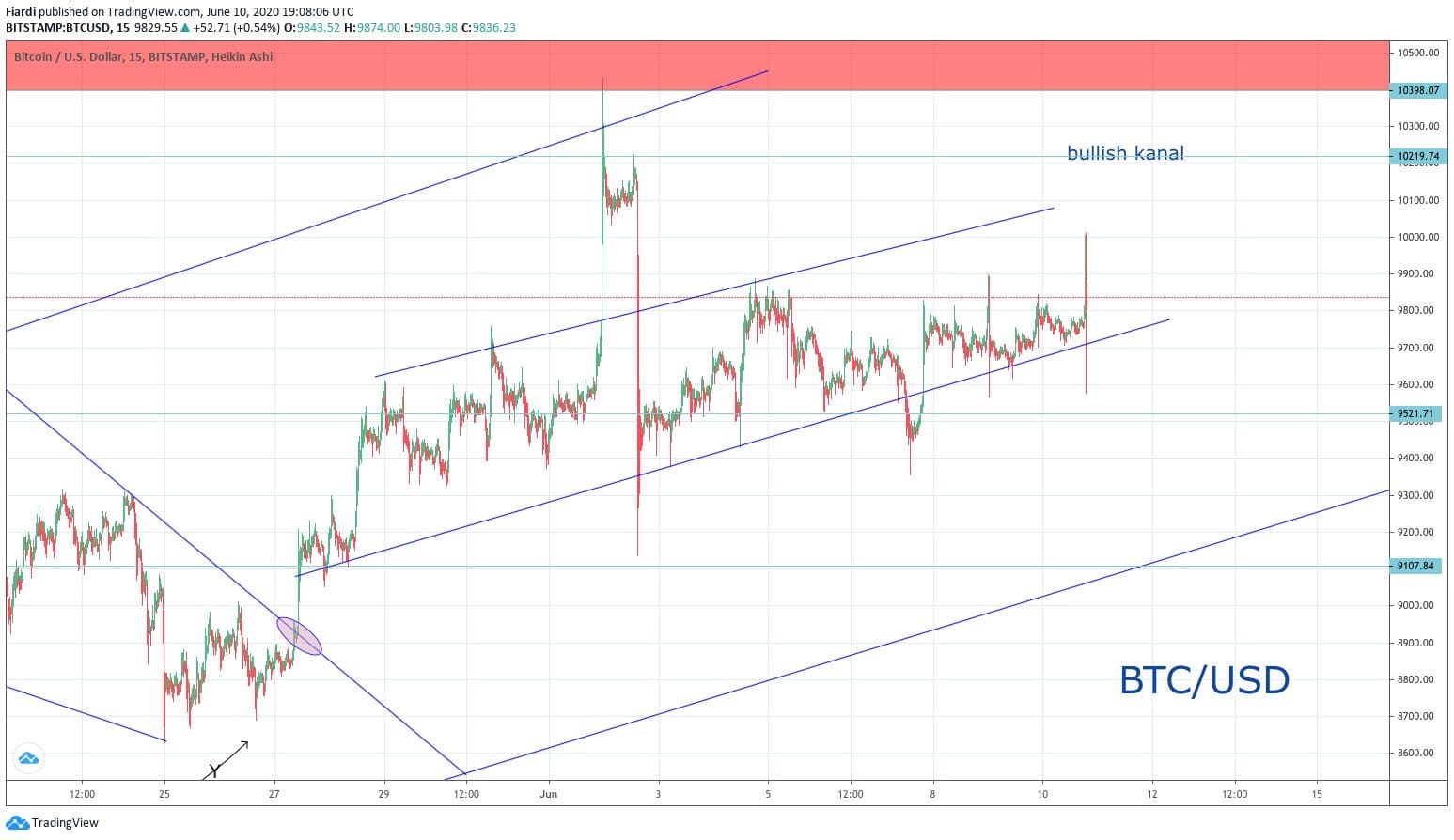 Bitcoin se včera pohyboval na 9 830 USD. V tomto týdnu vidíme minimální pohyb a BTC jako kdyby zamrzl. Růst za 24 hod. o 100 USD neznamená nic. Stejně zůstává nezměněna podpora na 9 100 USD a odpor na 10 000 USD. Momentálně se stále pohybujeme uvnitř menšího kanálu. V rámci růstu bychom měli pokračovat, dokud se support line neprolomí.