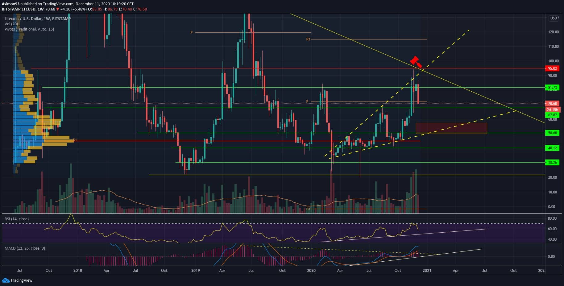 Aktuální situace na 1W TF LTC/USD