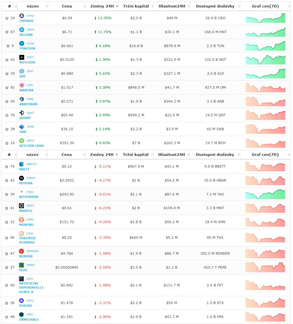 Avšak některé Altcoiny nesdílejí tak pozitivní obnovení předchozích cenových úrovní jako Bitcoin. Zatímco Bitcoin se nachází jenom 18 procent pod svým historickým maximem, třeba Ethereum (-35 procent od maxima) je na tom výrazně hůře navzdory silným spekulacím na růst ceny po zahájení obchodování ETF.