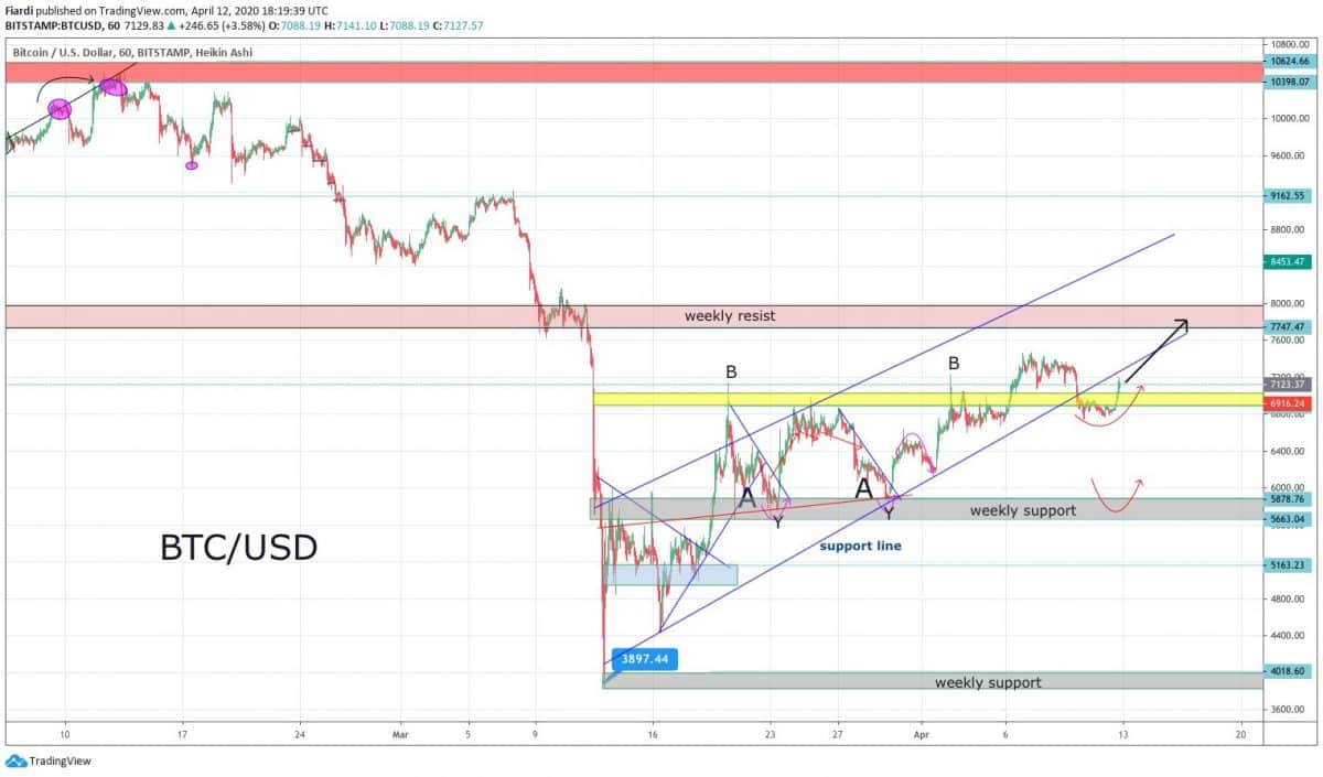 Bitcoin se začátkem víkendu dostal znovu na 7 000 USD. Uvidíme v neděli scénář z minulého týdne a půjdeme k 7 300 USD?