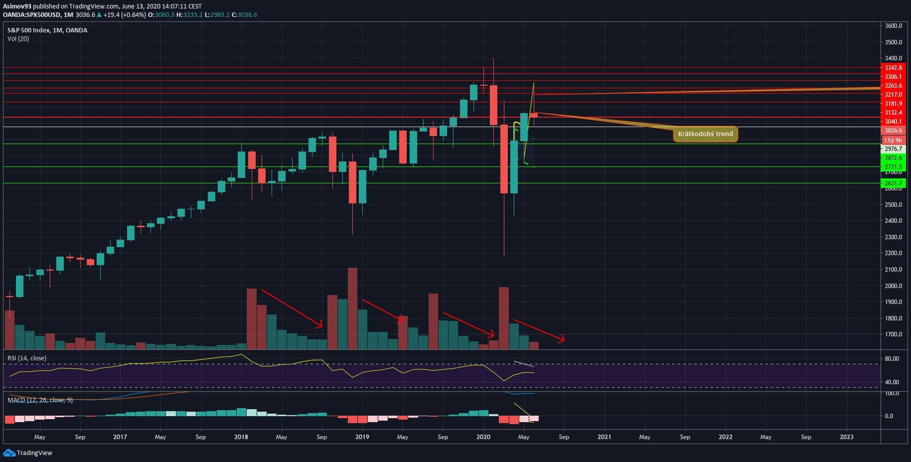 Ovšem na druhou stranu tomu ještě chybí bear volume, takže ten prodejní tlak není zrovna silný (zatím). Máme za sebou polovinu června a já mám takové silné tušení, že se aktuální měsíční svíce zavře jako velká rudá svíce a dole bude velký červený sloupec.