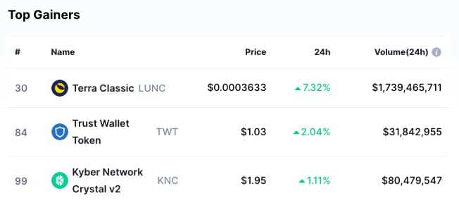 Celosvětová krypto tržní kapitalizace je 1,00 bilionů $, což představuje propad o 7,02 % za poslední den. Celkový objem kryptoměnového trhu za posledních 24 hodin je 101,18 miliardy USD, což představuje růst o 6,17 %. Celkový objem v DeFi je v současné době 7,49 miliardy USD, což je 7,41 % celkového 24hodinového objemu kryptotrhu.