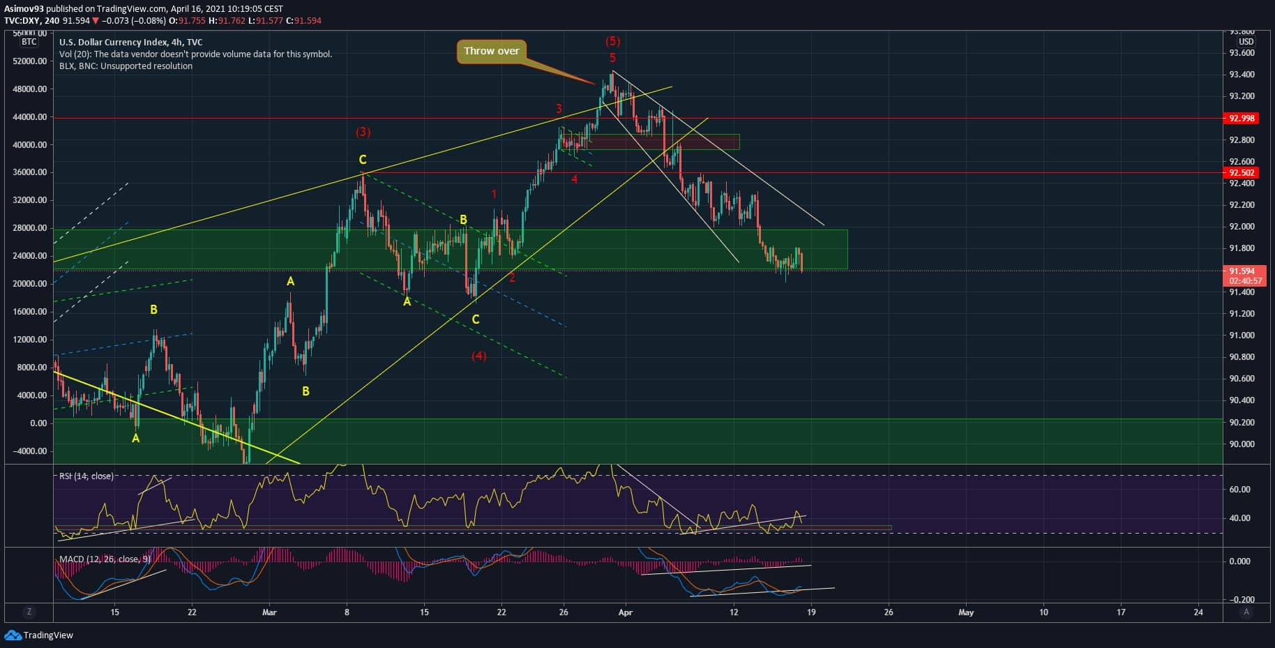 Dolarový index asi 48 hodin neklesá, ale ani neroste. Máme tu jakousi konsolidaci, ze které není zatím vůbec jasné, co přinese. Pokud každopádně dolarový index nepumpne, týdenní close bude pod 92 body, což je pro americký dolar medvědí signál. Nicméně je stále v kurzu leading diagonal a myslím si, že se během následujících dvou týdnů dozvíme, zda je pattern validní.