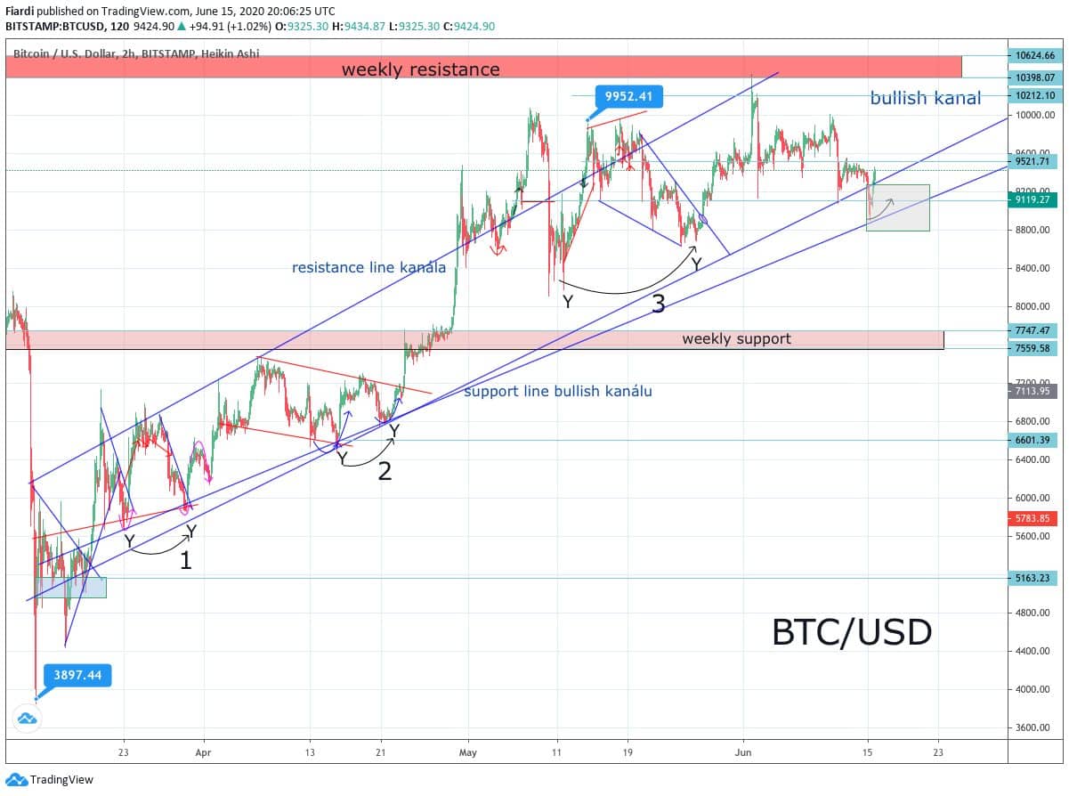 Právě tato podpora včera zachránila Bitcoin, aby nepropadl do bearish kanálu, kde by následoval propad k 7 700 USD. 9 100 USD podpora tak stále dokazuje, jak to je důležité. Růstem Bitcoinu k 9 450 USD se dostáváme na hodnoty, na kterých jsme začínali týden. Těžko říci, zda bude následovat růst k 10 000 USD, ale prostor zde určitě je. Kde prostor nevidíme, je růst nad 10 000 USD, který neočekáváme v tomto týdnu. Naopak posílit může několik vybraných altcoinů, které mají v tomto měsíci několik fundamentů jako zalistování na nové burzy, hard-fork či halving, který čeká například Verge, které včera přidalo na růstu až 21% a dostalo se tak na nové high za poslední 3 měsíce. Halving má přitom až 04.07., a tak má dost prostoru na růst. Stagnace Bitcoinu bude vyhovovat více altcoinům, které budou moci znovu dosáhnout na svůj high za rok 2020.