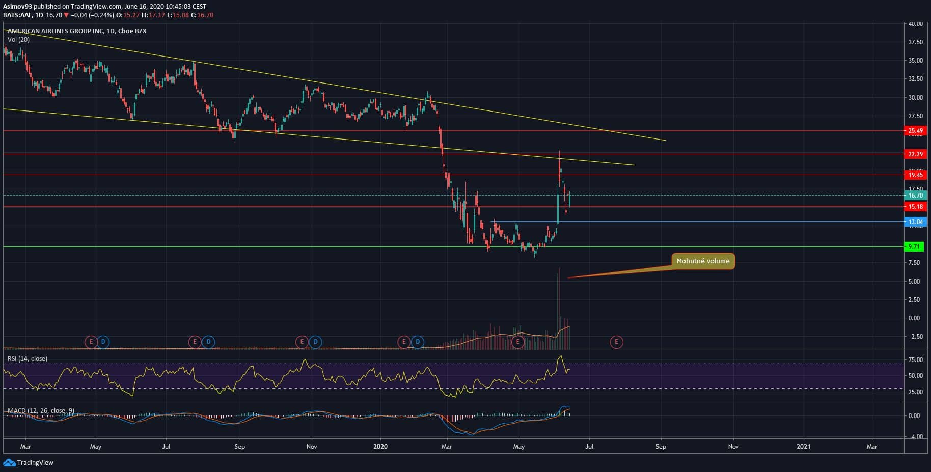 Další firmou na holení je American Airlines (AAL), která pokud vím, tak nekrachuje, ale trh s jejími akcie není taky zrovna zdravý. Buďte tedy v tomto ohledu velmi opatrní, protože spoustu nově příchozích investorů, bez jakéhokoliv finančního a ekonomického vzdělání, levné akcie zavedených firem lákají stejně jako hmyz světlo.