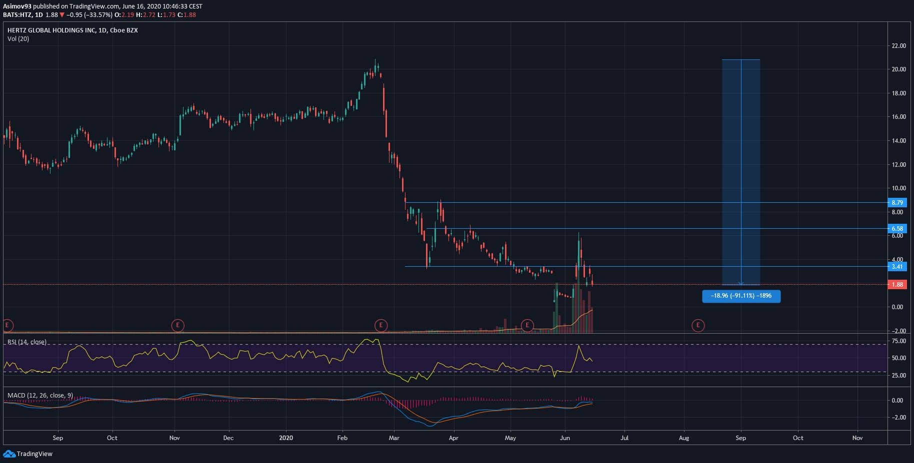 Dnešní analýza bude trochu netradiční, protože se v ní podíváme na trh s akciemi zkrachovalé firmy Hertz. Upřímně, moc podrobně jsem to pak nesledoval, ale spíše to vypadalo, že firma půjde do likvidace. Každopádně, není moc moudré držet akcie této firmy a v analytické části podrobněji vysvětlím proč.