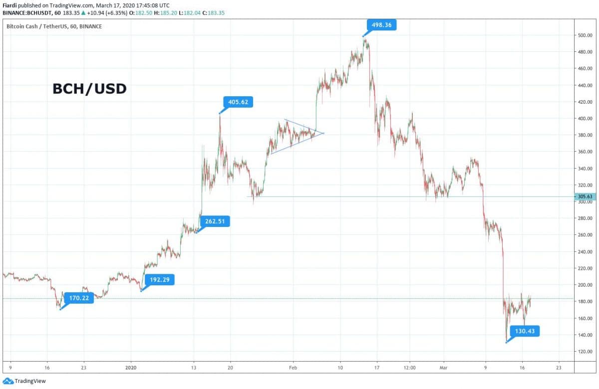Momentální hodnota BCH je 183 USD a je pravda, že jsme se od 130 USD potáhli mírně vzhůru. Za současného stavu, stejně jako na Litecoinu, nevidíme velký prostor pro růst, který obvykle po takovýchto propadech bývá.