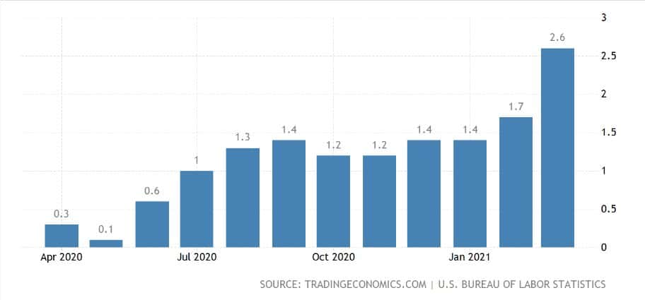 Inflace dost dlouho stagnovala a byla vcelku daleko od inflačního cílování Federální rezervní banky, což jsou 2 %. Navzdory téměř nulovým úrokovým sazbám a kvantitativnímu uvolňování (QE) byla inflace dost nízká. I když očekávání bylo samozřejmě takové, že přijde vyšší inflace. Řečené očekávání mělo však základ v nemalé bláhovosti.