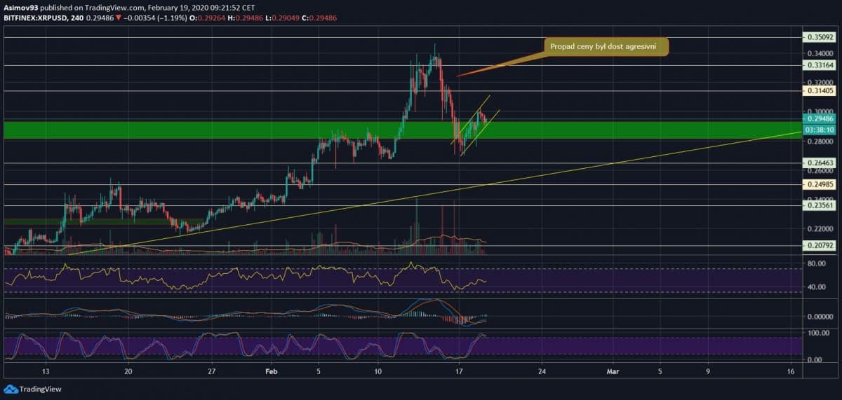 Pro trh je důležité otestovat úroveň lokálního maxima u rezistence 0,35 USD. Když se povede průraz, tak by se cena mohla za pár týdnů vyšplhat k 0,4 USD. Ovšem pokud jste fanoušci Ripple, či na tomto trhu gamblujete, tak si dávejte velký pozor a nezapomeňte na stop lossy. Při poslední korekci byl propad sice stejný jako u jiných top altcoinů, ale nemusí to tak být i při následujících příležitostech. V minulosti bylo pro XRP docela normální se vylít během pár dní i o více jak 40 %.
