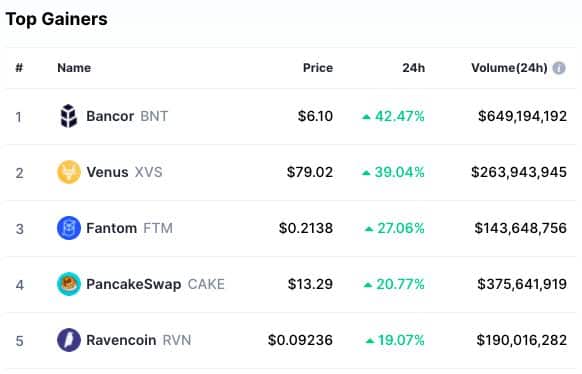 Celkový objem kryptoměny za posledních 24 hodin je 139,63 miliardy USD, což znamená pokles o 25,76 %. Celkový objem v DeFi je v současné době 12,13 miliardy USD, což je 8,69 % z celkového 24 hodinového objemu kryptoměnového trhu. Objem všech stabilních mincí je nyní 104,42 miliardy USD, což je 74,78 % z celkového 24hodinového objemu kryptoměnového trhu.