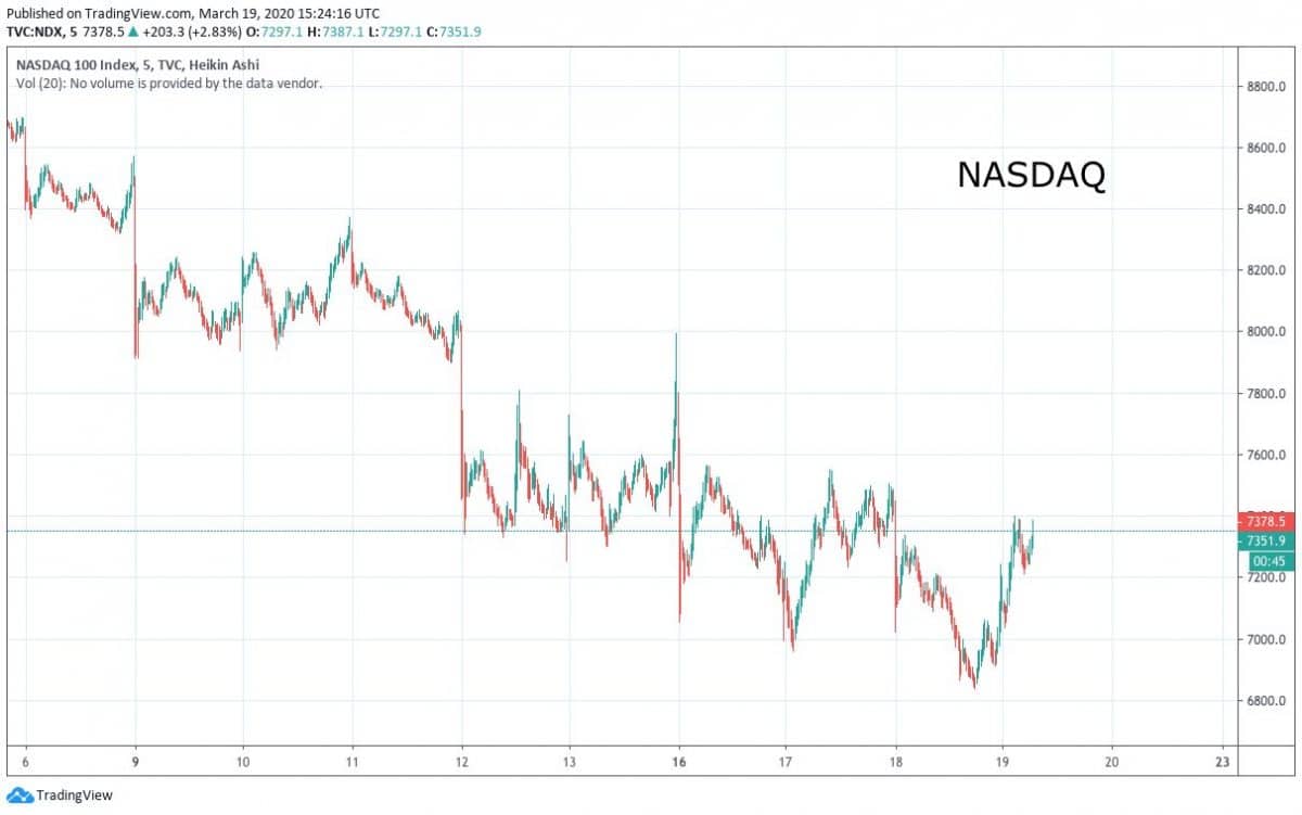 V pondělí ráno v 9.00 se otevřely světové trhy, které byly po chvilce znovu uzavřeny poté, co světové indexy jako NASDAQ, DOW J. a SP500 propadly o 10 %. Na 15 minut bylo zastaveno obchodování, což se v tomto měsíci stalo již podruhé, což je nesmírně závažná věc. Takové uzavření obchodování tu dlouhá léta nebylo a přišlo to až v této době, kdy jsou již světové trhy v bear marketu. Neoficiální pravidlo hovoří o 20% propadu pro prohlášení bear marketu. Po zastavení obchodování se trhy uklidnily a postupně rostly resp. během celého týdne se znovu a znovu dostáváme na ty největší hodnoty. Vytváříme přitom nové nižší hodnoty za rok 2020.