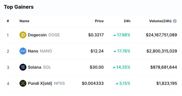 Celkový objem kryptoměn za posledních 24 hodin je 288,65 miliardy USD, což znamená nárůst o 15,28 %. Celkový objem v DeFi je v současné době 22,12 miliardy USD, což je 7,66 % z celkového 24hodinového objemu kryptoměnového trhu.