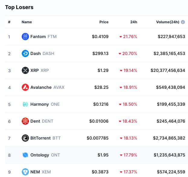 Noční krach, který začal pozdě večer v sobotu, zvýšil celkovou tržní kapitalizaci kryptoměn po celém světě o přibližně 310 miliard dolarů za méně než 24 hodin, což umenšilo kryptoměnový trh z více než 2.2 mld. dolarů na méně než 1.9 bilionu dolarů. Cena Bitcoinu propadla až na 51 570 USD za posledních 24 hodin. Likvidace BTC během bleskového krachu dosáhly podle údajů Bybt více než 10 miliard dolarů.