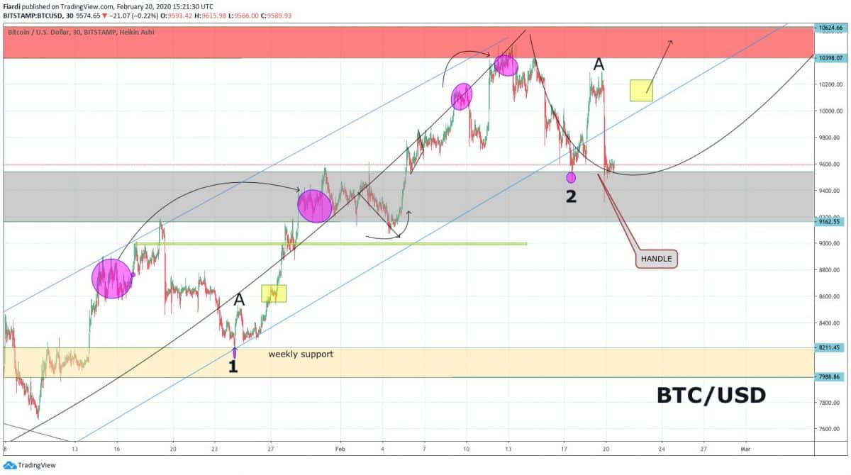 Bitcoin byl včera po růstu, kdy se jeho cena pohybovala až na 10 200 USD. Dnes je situace dosti jiná a jsme na 9 550 USD. Vymazali jsme přes noc více než 700 USD. Ráno se Bitcoin dokonce knotem pohyboval na 9 300 USD, jak to vidíme na grafu. Za celým tímto růstem a poklesem jsou určitě i fundamentální zprávy. Včera jsme vás informovali o přetížení burzy Binance a menší neplánované odstávce. Nesporným faktem ale určitě je také technická analýza a fraktální podobnost Bitcoinu s předešlých cyklem.