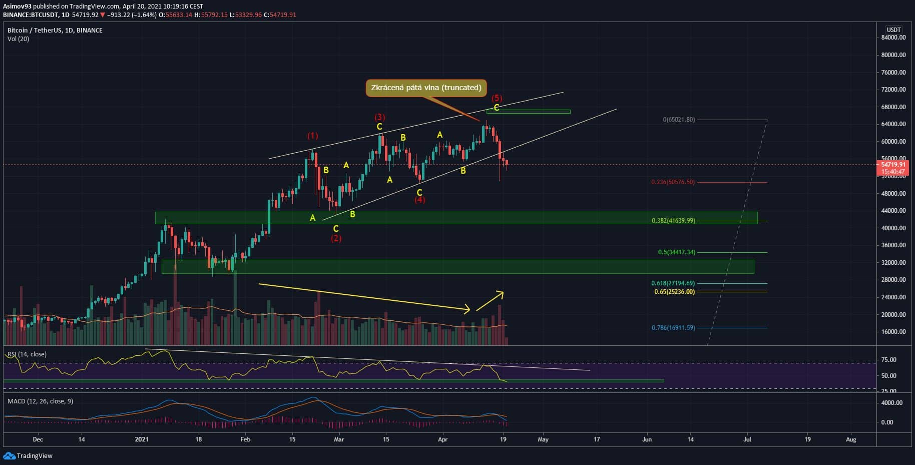 V pondělní analýze na Bitcoin (BTC) jsme si řekli, že pattern ending diagonal se potvrdil a proto bychom se měli připravit na velmi pravděpodobný pokles k 42 000 USD. Leč zatím se Bitcoin vcelku solidně drží a dolů se mu moc nechce. Je tedy jakási šance, že se již nyní dočkáme oživení s obnovenou snahou o průraz do vyšších cenových úrovní? Určitě je, ale potřebujeme nějaké signály, které řečený scénář podpoří.