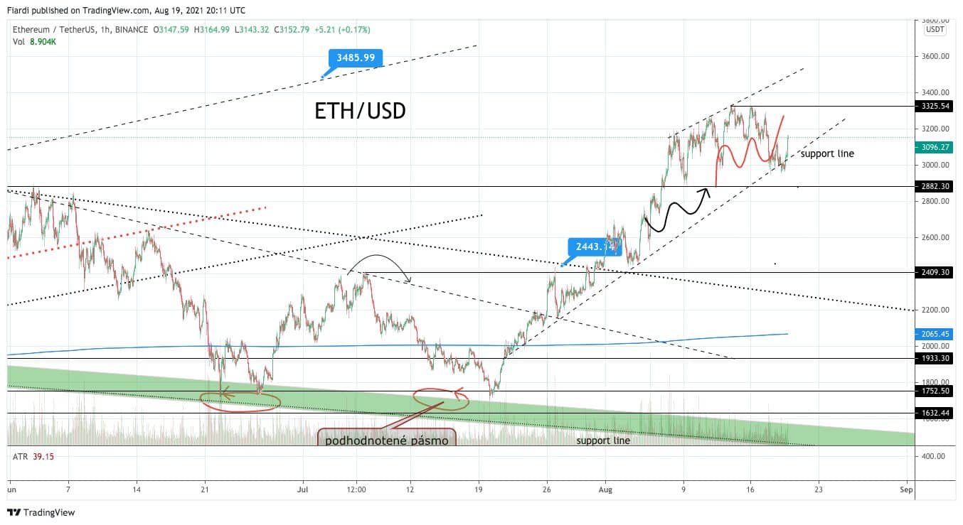 Bitcoin i Ethereum zkoušejí své investory do poslední kapky. Pokud support line bude prolomena výraznějším způsobem, hrozí propad k 2 882 USD. Alespoň tady se nachází nejbližší podpora a následně by se vidělo, jak velký tlak vytvoří medvědi, a zda budou chtít jít ještě o něco níže.