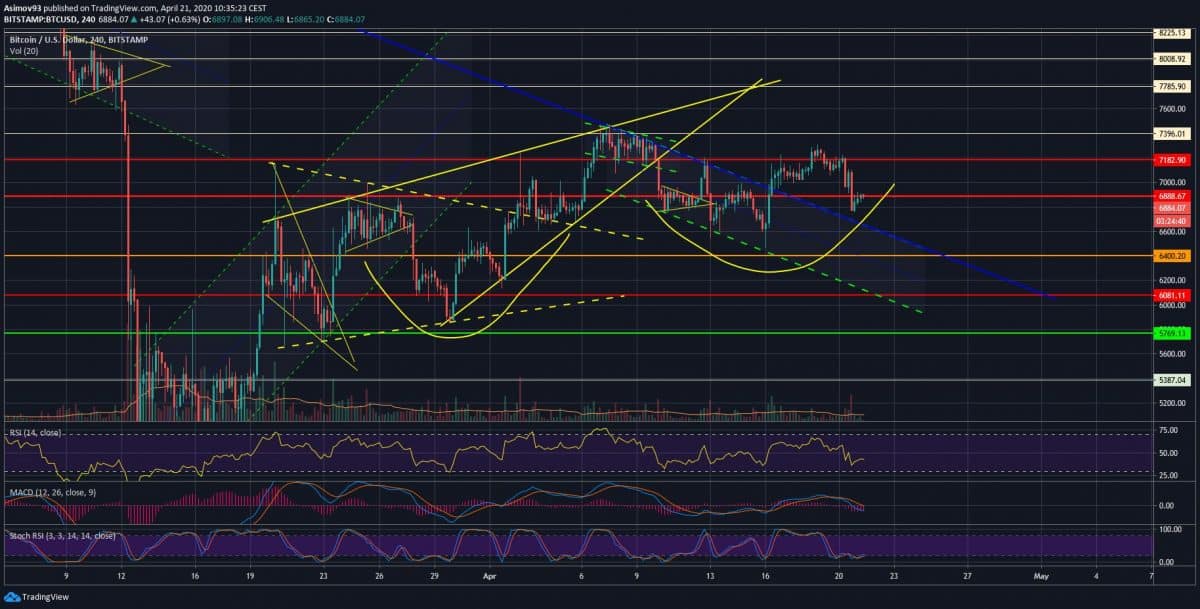 Nicméně, v těchto chvílích kurz konsoliduje kolem úrovně 6 888 USD, takže tu existuje šance na to, že býci převezmou ve výsledku iniciativu a cenu ještě pumpnou. Ovšem pozitivní momentum viditelně ztrácí sílu. Na druhou stranu je cena i nadále nad střednědobou rezistenční trendovkou, takže z technického hlediska je to ještě v pořádku.