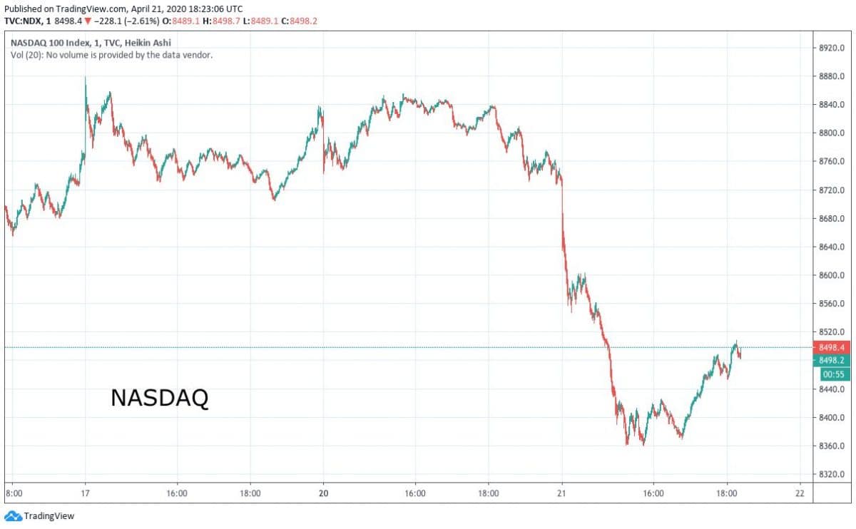 Dnes jsme mohli na NASDAQ vidět 3% propad, který byl vyvolán jednou větší svíčkou. Není to nějaký výrazný propad, no i včera jsme přidali 2,5% a jak vidíme i na Bitcoinu, dopad to má. Bitcoin momentálně kopíruje pohyb světového trhu a ten v tomto týdnu ztrácí stejně jako on. Momentálně se pohybujeme na hodnotách 8 510 USD. Low včerejšího dne jsme zaznamenali na 8 358 USD. High na 8 555 USD. Je dost pravděpodobné, že v propadu zůstaneme napříč celým tímto týdnem, protože zprávy o počtu nakažených se v US každým dnem náramně zvyšují a investoři jsou vylekaní z blízké budoucnosti.