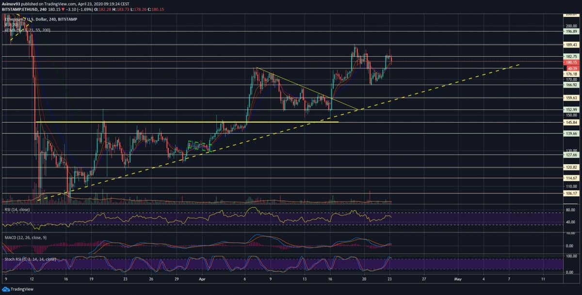 Když se podíváte na strukturu trhu, tak to zamítnutí sice nevypadá dobře, ale pořád je Ethereum v uptrendu. Alespoň do té doby, kdy kurz respektuje zakreslenou trendovku. Vzhledem k tomu, že pozitivní momentum slábne, tak je i značně pravděpodobné, že cena k trendové přímce klesne a znova ji otestuje. Brzy tedy možná uvidíme, zda znova obstojí, či nikoliv.