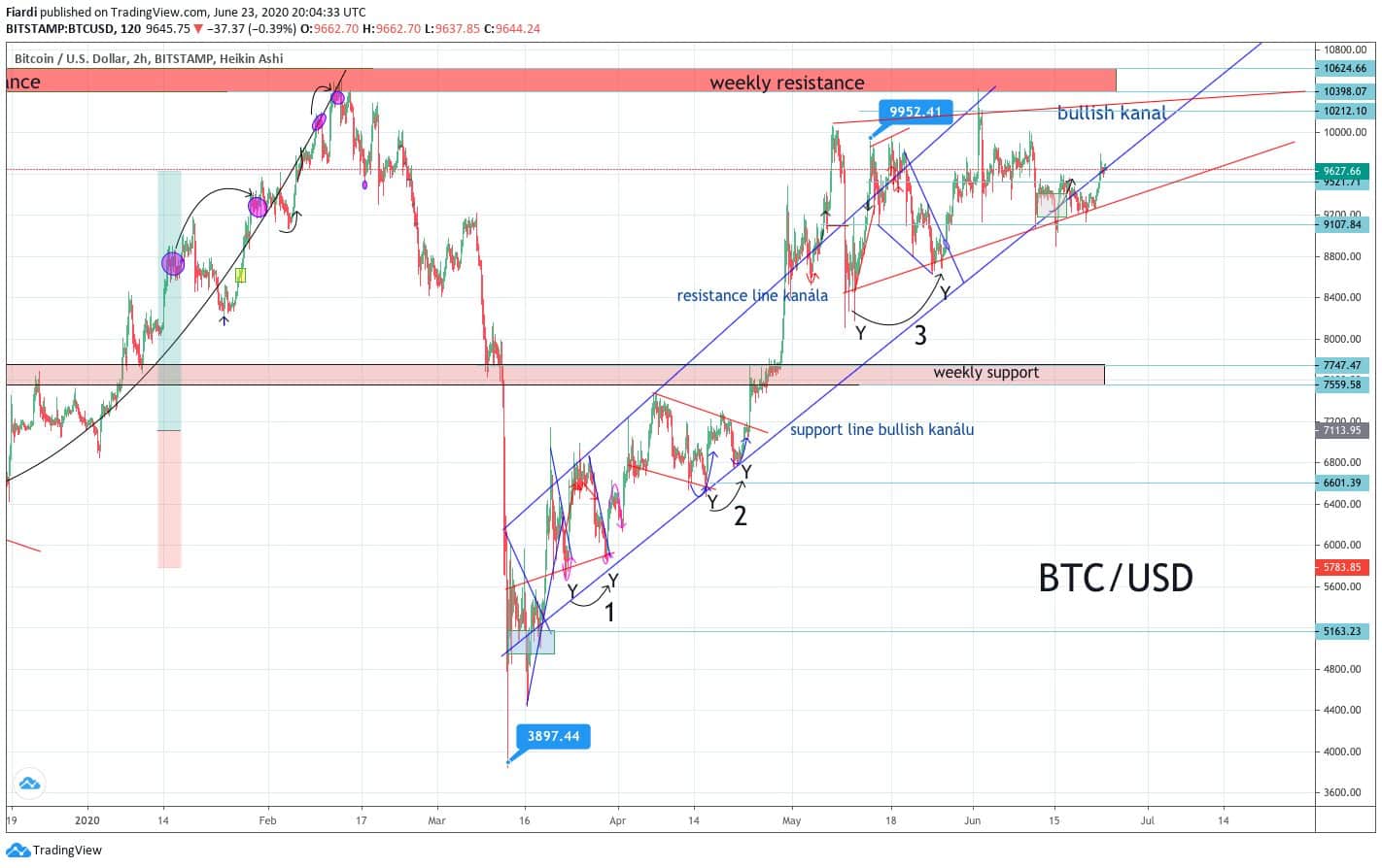 Bitcoin se probudil. Po týdnu nečinnosti vidíme znovu růst, ale na návrat do bullish kanálu to zřejmě nebude. Ve hře bude odpor na 10 000 USD.