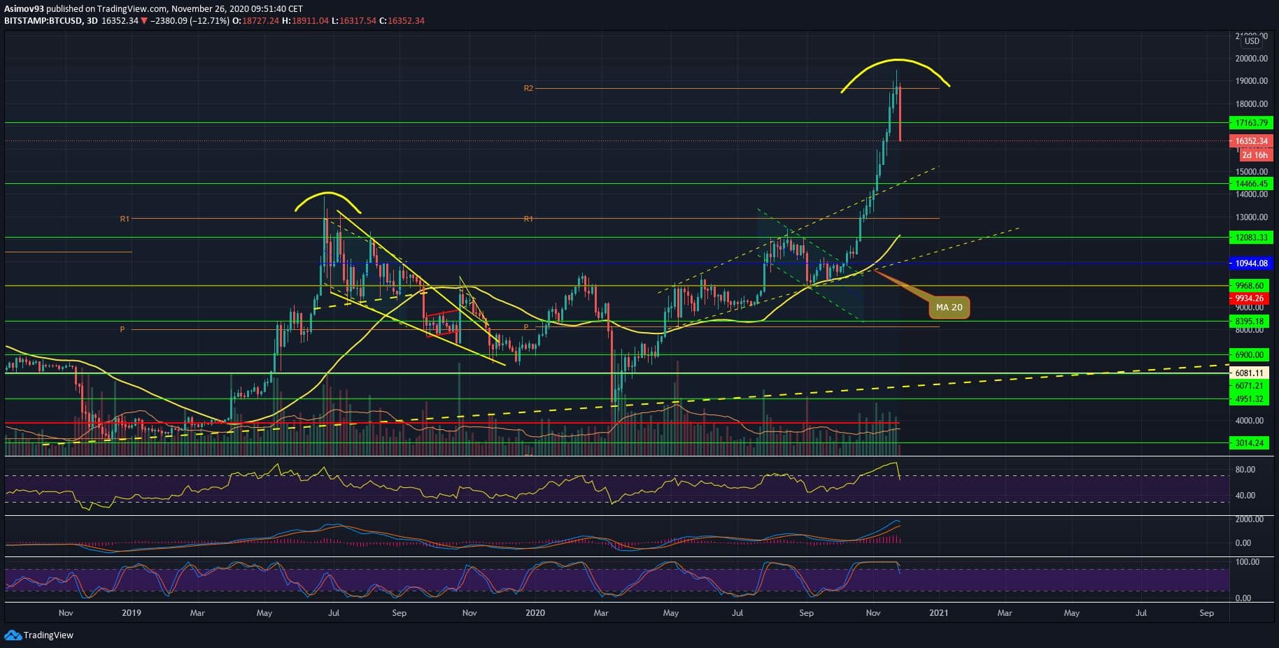Aktuální situace na 3D TF BTC/USD