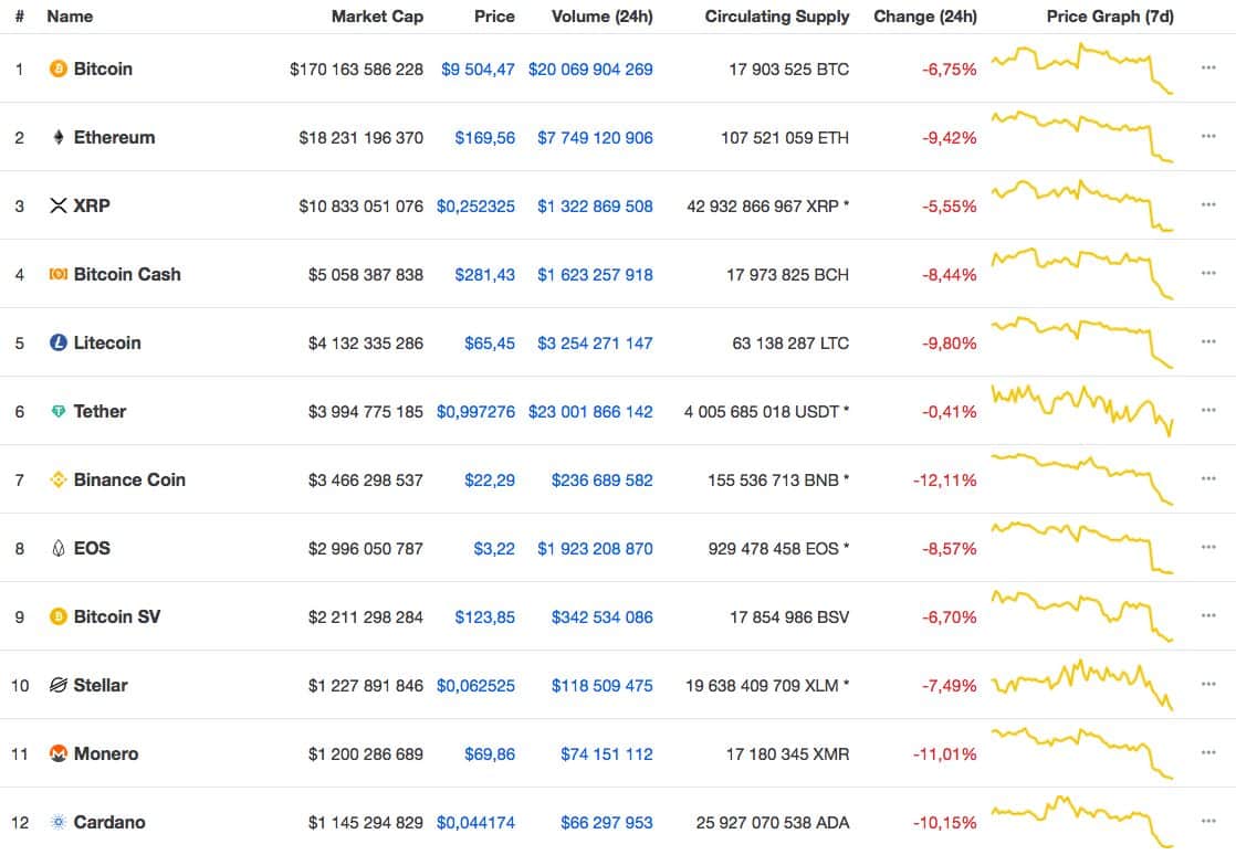 Bitcoin season se na 2,5 měsíce odkládá. Bitcoin přes noc ztratil 800 USD, ale jeho dominance při 70% stále zůstává nezměněna. Včerejší propad BTC o 800 USD se momentálně zastavuje na hodnotě 9400 USD. Při pohledu na graf vidíme, že tato podpora je nesmírně silná, momentálně vidíme Bitcoin již 4x na této hodnotě. Odraz na tomto supportu bych podle mých zkušenosti očekával až na 70% pravděpodobnosti. Následující resistanci (odpor) bych očekával na 10 000 USD a následně 10 500 USD.