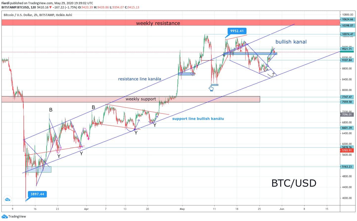 V pátek Bitcoin doslova zamrzl. Minimální pohyb dokazuje i low a high včerejška. Low jsme zaznamenali na 9 330 USD. High jsme zaznamenali na 9 610 USD.