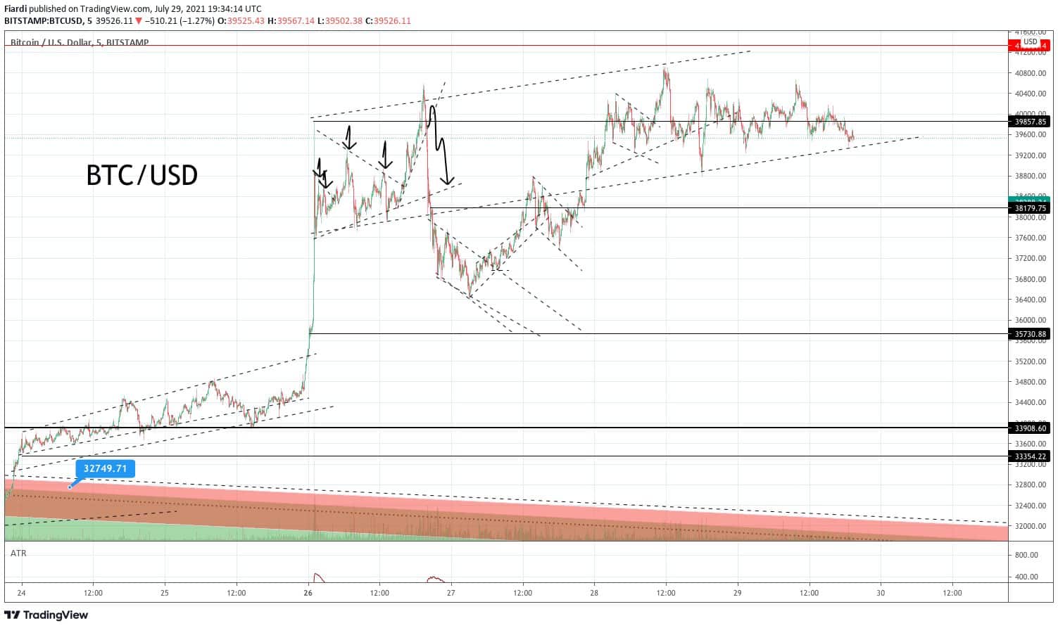 Kryptotrh to přijal s nadšením. Kurz bitcoinu stoupl o 15 procent na 40 tisíc dolarů z 32 500 dolarů. Investoři spekulující na pokles měny (short) museli prodat své pozice v hodnotě 900 milionů dolarů. Ve čtvrtek večer na Bitcoin pohybuje těsně pod 40 000 dolarů s 1% ztrátou. V rámci pohybu vidíme slabou support line na 39 300 dolarů. Investoři v následujících hodinách nemají zájem jít k 42 000 dolarů naopak v pátek budou muset čelit útoku bears zda odolají a budou mít prostor růst k 42 000 uvidíme o víkendu. V případě propadu bych čekal hodnoty na 36 500 dolarů.