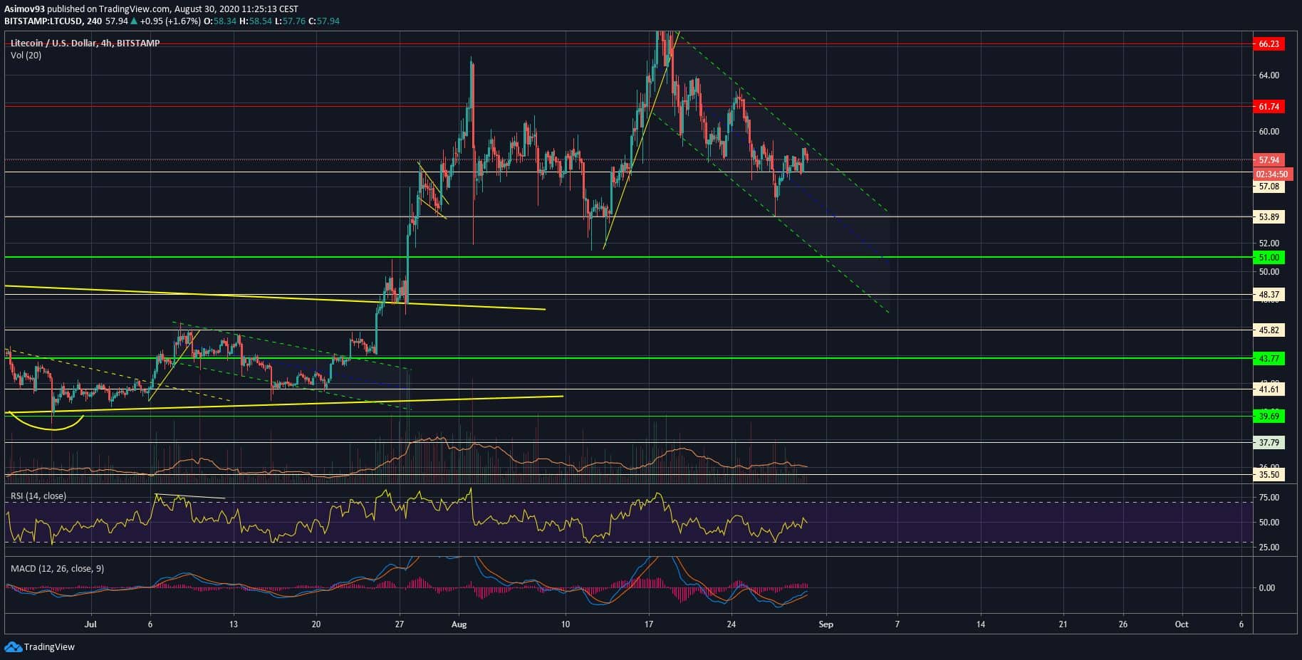 Aktuální situace na 4H TF LTC/USD