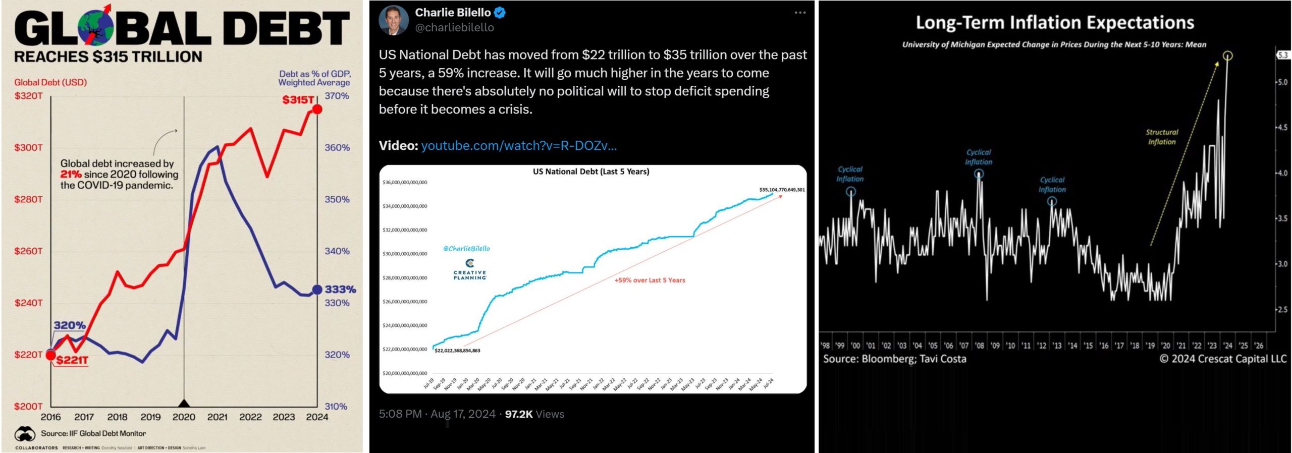 Důvodů pro další růst ceny zlata je mnoho. Hned jako první se nabízí tempo růstu globálního dluhu. Od roku 2016 vzrostl světový dluh o 50 procent. V roce 2020 se tempo zrychlilo zavedením balíčků pro stimulaci spotřebitele a ekonomiky. Podobně v Americe narostl státní dluh za posledních 5 let o závratných 59 procent! Ze 22 na 35 biliónů USD.