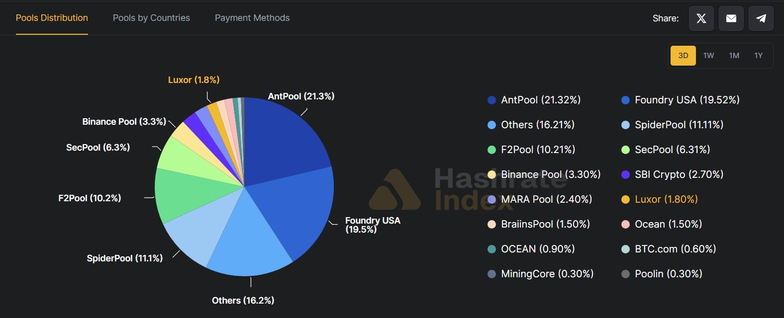 Pokles zaznamenal také Luxor, jehož hashrate klesl zhruba z 45 EH/s na necelých 22 EH/s (v době psaní článku na méně než 16 EH/s). Menší útlumy hlásily i pooly Antpool nebo Binance Pool.