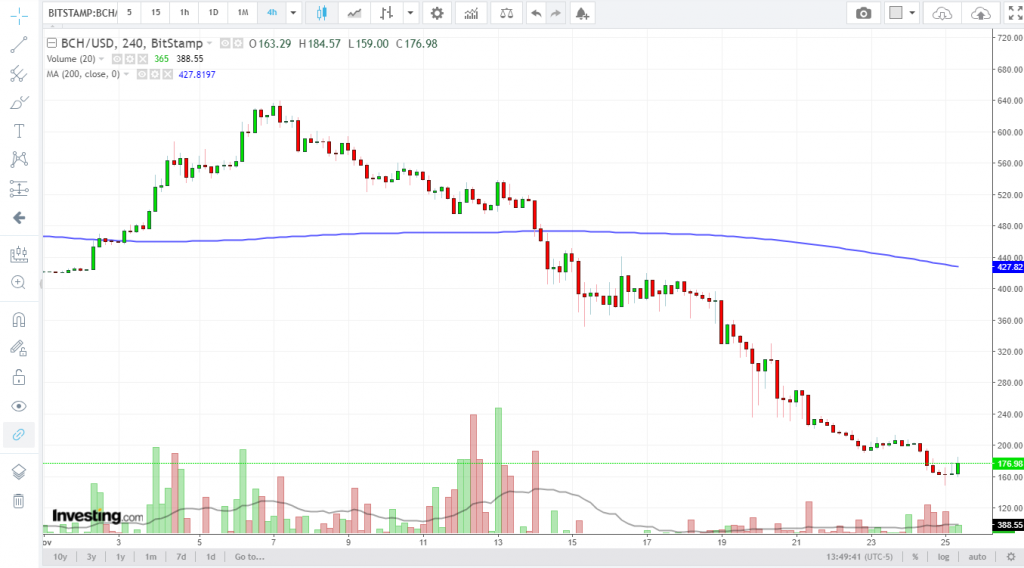 Po výhře a po uznání se od kryptoburz očekávalo, že BCH se vrátí zpět na své předešlé úrovně podpory ve výši 250 a 300 USD. Přesto cena nadále klesala a nakonec dosáhla nové roční minimum na úrovni 150 USD. (V čase psaní tohoto článku byla cena BCH 176 USD.)