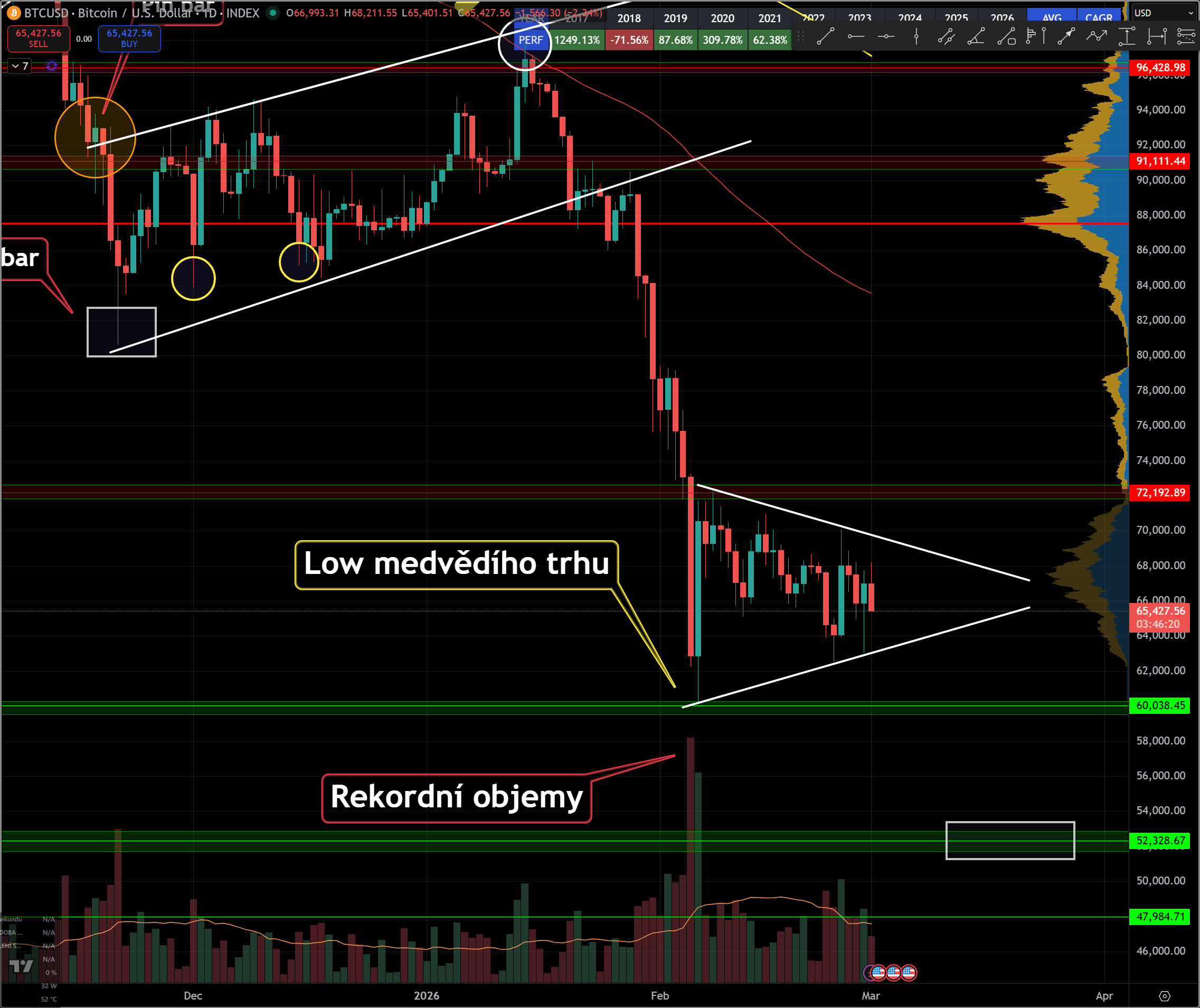 Každopádně DCA dál a sem tam přihodit v dipu (při 70k a následně na 60k už proběhlo, teď je otázka, dostaneme-li se i na těch 50k? Těžko říct, ale makro tomu zatím hezky nahrává!).