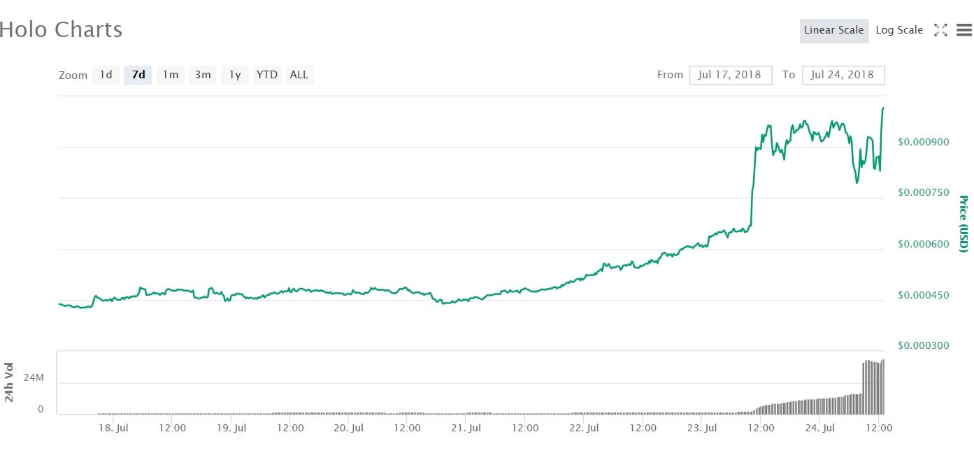 Když se relativně neznámý altcoin dostane na velkou burzu, téměř vždy se to odrazí na jeho ceně. Posledním důkazem je kryptoměna Holo (HOT). Ta se po oznámení o zalistování na Binance zhodnotila o 45 %. Zatímco před přidáním byla obchodována za 0.00066 USD, v době psaní článku už pomalu atakuje hranici 0.001 USD.