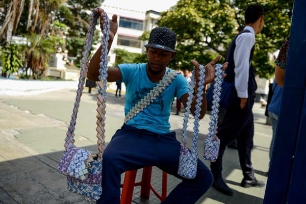 Lidé ve Venezuele jsou však kreativní a namísto naříkání si vyhrnuli rukávy a pustili se do práce. Z bezcenných bankovek začali vyrábět různé předměty, například tašky.