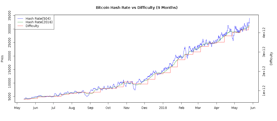 Je to Hash Rate, která kontinuálně roste.. Prohlédněte si následující graf: