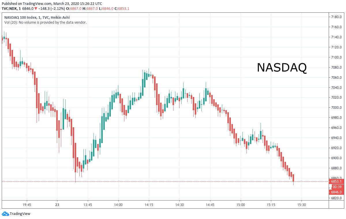 NASDAQ dnes dobře otevřel, ale tento růst byl během pár hodin vymazán. Momentálně už znovu začínáme tvořit nové low za rok 2020. Zdá se, že Fed chce zachránit americký trh všemi prostředky, ale přitom nesmí zapomenout na to podstatné. Pokud se situace ve světě ohledně koronaviru nevyřeší, lidé prostě nebudou mít na investování myšlenky a to bude mít dopad na akcie i indexy.