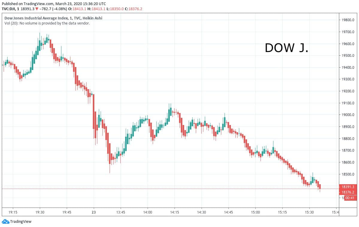 Indexy v pondělí reagují na opatření Fedu, ale i přesto vidíme mírný pokles. DOW J. a NASDAQ už jsou dokonce na novém low za rok 2020.